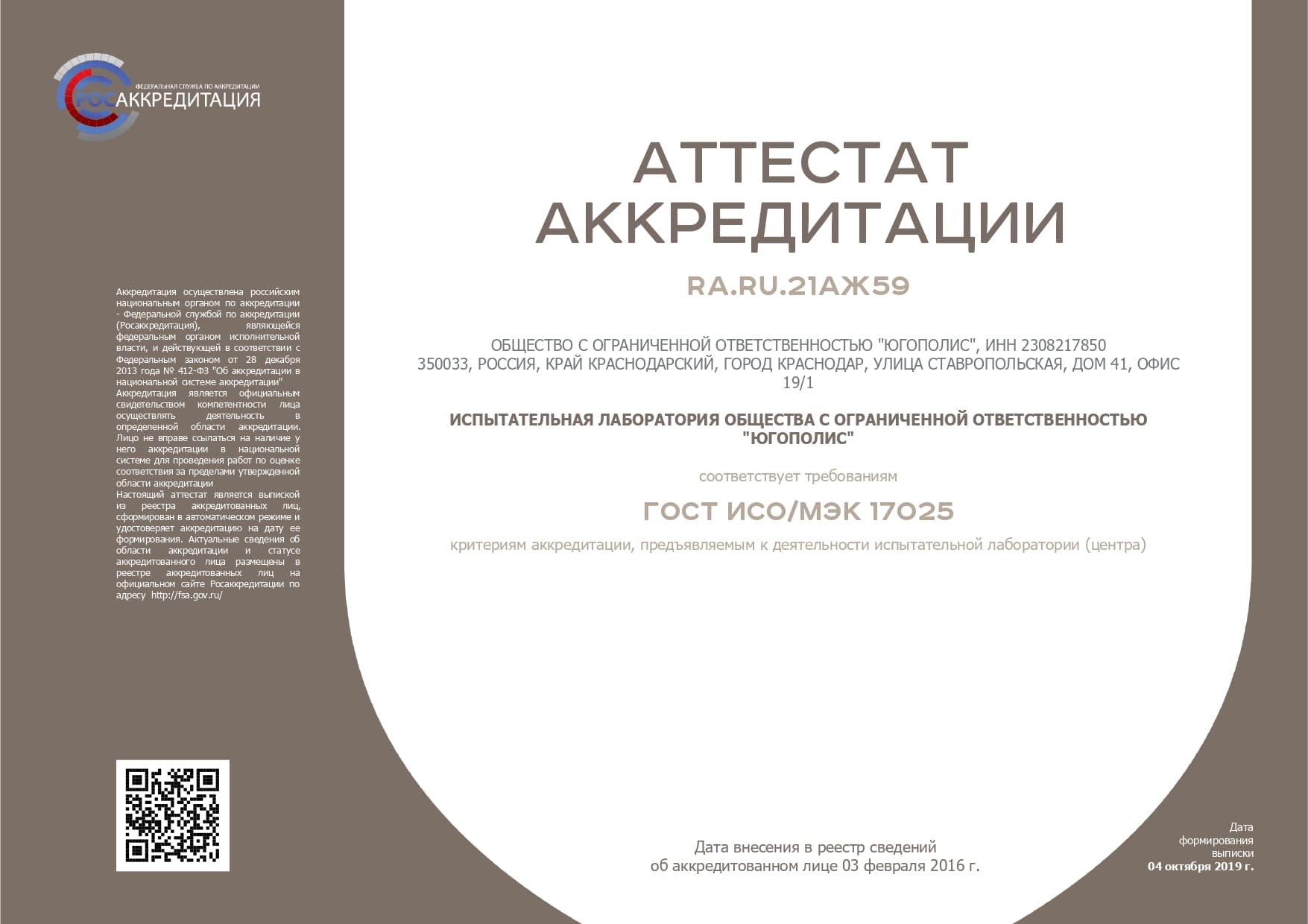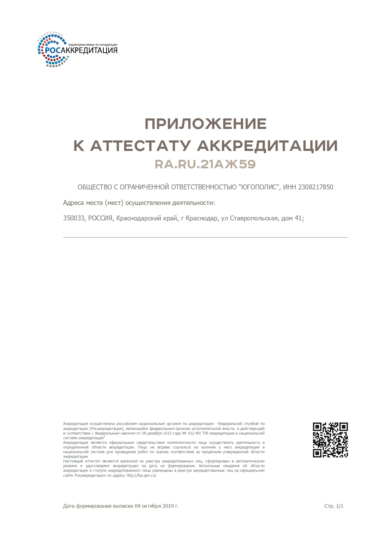 Аттестат от 04.10.2019